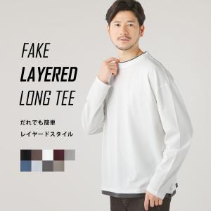 カットソー Tシャツ ロンT 長袖Tシャツ メンズ 秋 冬 フェイクレイヤード 長袖