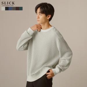 プルオーバー ニット トップス メンズ ワッフル ワッフルニット クルーネック 長袖 ブランド スリック 5155734