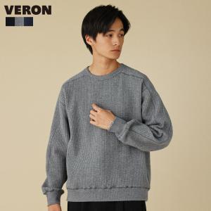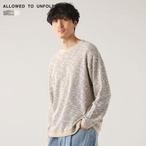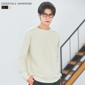 ニット セーター トップス メンズ スラブ ワッフル ダブルフェイス クルーネック 長袖