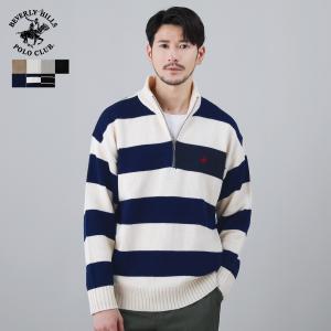 ニット メンズ ハーフジップ 長袖 刺繍 ロゴ ワンポイント ボーダー