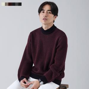 ニット メンズ 秋 秋服 冬 冬服 長袖 モックネック ハイネック アクリル 畦編み ストライプ カジュアル