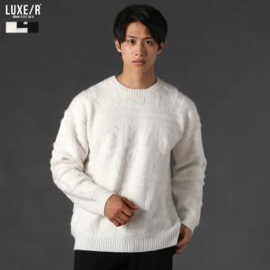 ニット セーター メンズ 秋 冬 秋服 冬服 長袖 アクリル ナイロン ジャガード クルーネック ロゴ 総柄 ストレッチ 伸縮性