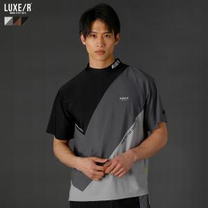 【セットアップ対応】 カットソー Tシャツ メンズ 夏 ゴルフ 接触冷感 速乾 ナイロン ハイネック 半袖 ストレッチ 切り替え ラグジュ 45612
