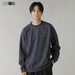 トレーナー スウェット メンズ 秋 フェイクスウェード クルーネック ドロップショルダー シンプル ポリエステル ポリウレタン リブ ストレッチ イージーケア