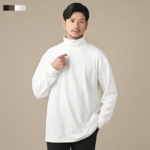 カットソー メンズ 秋 冬 秋服 冬服 タートルネック ハイネック 長袖 起毛 ポンチ ソフト リラックス 無地 ホワイト ブラック グレージュ ブラウン