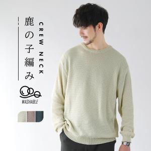 ニット クルーネックニット メンズ 春ニット ウォッシャブル 12G ポリエステル 鹿の子編み クルーネック 長袖