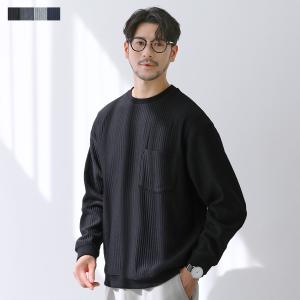 スウェット キルト メンズ メンズファッション 秋 秋服 冬 冬服 長袖 カットソー プルオーバー クルーネック カジュアル キレイめ リブ 胸ポケット 丸首