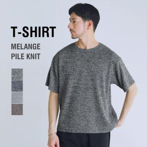 Tシャツ カットソー メンズ 夏 夏服 半袖 クルーネック 杢 メランジ パイル ストレッチ 軽量 キレイめ ブラック ネイビー グレー ブラウン S M L LL XL