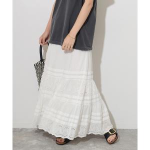 スカート 「WEB限定追加2」コットンボイルタック刺繍ロングスカート