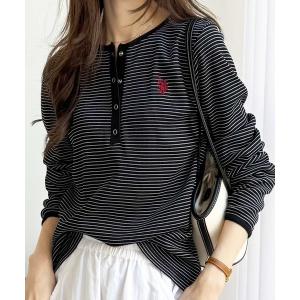 tシャツ GeeRA別注「U.S.POLOASSN.」ワンポイント刺繍 ワッフルヘンリーネックボーダーロンT レディース