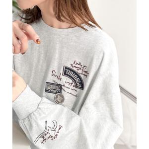 tシャツ ゆるさの中に「ちょうどいい」お洒落感!綿100%刺繍ワッペンドルマンロンTEE(長袖) レディース