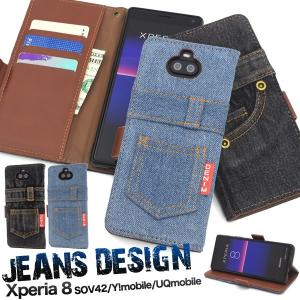 Xperia8 ケース 手帳型 ダメージジーンズ調 エクスペリア8 au SOV42 Y!mobile UQmobile スマホケース 携帯カバー ストラップホール付 爆買