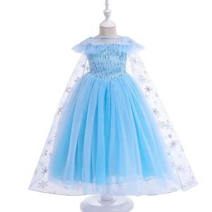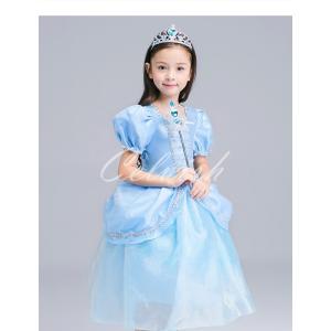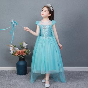 アナ雪 エルサプリンセスドレス ブルー コスプレ 子供ドレス トレーン 衣装 仮装 USJ C-1342561