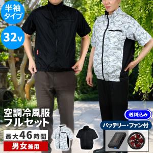 空調冷風ウェア 半袖 フルセット 32V KW-ALL24-SS 送料無料 2color 空調服 バッテリー ファンセット ベスト ファン サイドファン ファン付き 熱中症対策 PSE