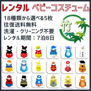 【レンタル●竹】ベビーコスチューム 5点 キャラクター 7泊8日 ディズニー USJ 往復送料無料 洗濯不要