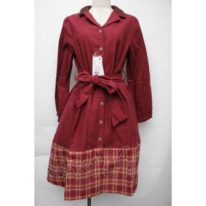 axes femme / チェックバイカラーシャツワンピース ワイン S-25-11-30-035-AX-OP-HR-ZS