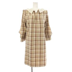 アクシーズファム axes femme ワンピース M 茶 白 チェック柄 丸襟 長袖 /JP レディース
