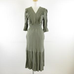 Fifth ワンピース 七分袖 ミモレ丈 フリル 緑 *A25 レディース