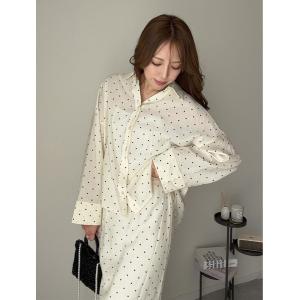 ブラウス シャツ ドット柄スキッパーシャツ レディース