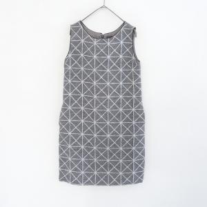 ミナペルホネン mina perhonen *geo 刺繍スリーブレスドレスワンピース*38ダークグレー総柄ノースリーブ(33-2503-270)【01D52】
