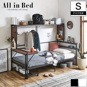 4/6 8:59まで最大10%OFF! スチールベッド アイアンベッド システムベッド デスク付き ベッドフレーム 有孔ボード ハンガーレール 棚付き