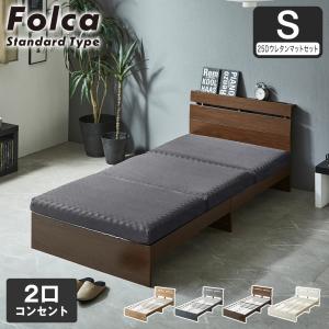フォルカ Folca すのこベッド 棚付き コンセント付き 木製 10cm厚マットレスセット シングル 北欧 モダン モルタル調