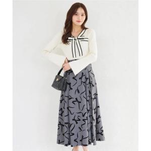 トッコクローゼット tocco closet 全方位モテを狙うネックリボン付きラッフルフリルリボンプリントワンピース
