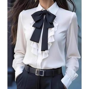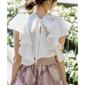 ブラウス シャツ タイ付きフリルブラウス レディース