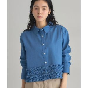 ブラウス シャツ デニム裾フリルシャツ レディース
