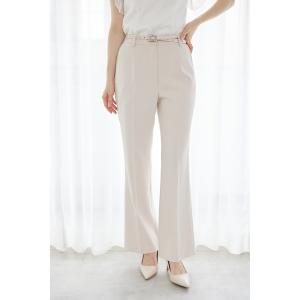 スラックス パンツ ビジューバックルベルト付きパンツ レディース
