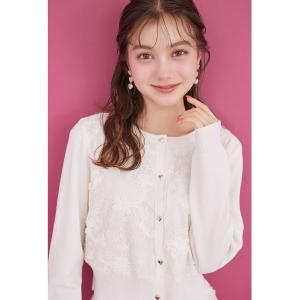 カーディガン ハートボタン立体フラワーレースドッキングニットカーディガン レディース