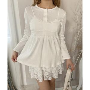tシャツ ドットレイヤードリボントップス レディース