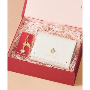 送料無料 サマンサタバサ クリスマス 限定 キラキラ ビジュー付 牛革 三つ折り財布 折財布 ミニ財布 白 チャーム付 ギフトBOXセット 新品 証明書付 開運 金運up