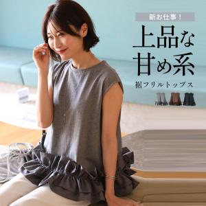 トップス フリル ノースリーブ カットソー 異素材 ボリューム 高見え 上品 カジュアル オフィス 可愛い お洒落