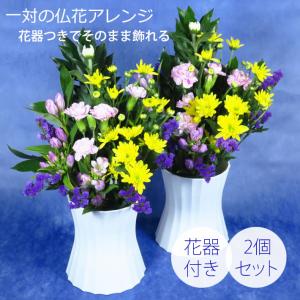 お供え 花 お悔やみ お彼岸 一対 仏花 一対の仏花アレンジ そのまま飾れる 花器付き お供え お悔み 花 御仏前 仏壇 仏壇用 故人 月命日 命日 彼岸 四十九日