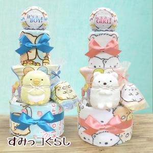 おむつケーキ オムツケーキ すみっコぐらし 出産祝い 3段 豪華6点付き しろくま ぺんぎん? 男の子 女の子