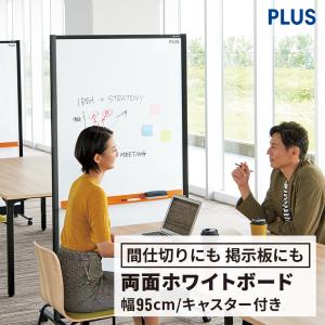 ホワイトボード 脚付き パーテーションホワイトボード 両面 ブラックフレームタイプ 幅95cm キャスター付 パーティション