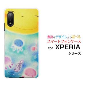 XPERIA Ace II SO-41B スマホ ケース/カバー ガラスフィルム付 笑顔と音符とくらげ やのともこ デザイン にっこり メルヘン パステル 癒し系