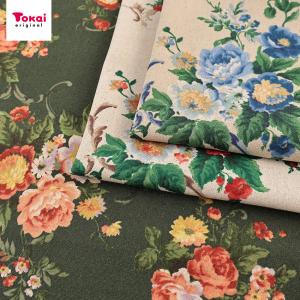 YUWA rose garden 綿麻キャンバス 50cm単位|有輪商店 生地 切売り 切り売り 布 布地 コットンリネン フラワー柄 フラワープリント ゆうわ ローズ レトロ