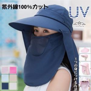 UVカット 帽子 ウイルス対策 つば広 レディース日よけ帽子 フェイスカバー付 サンバイザー 日焼け 紫外線対策 ハット ネックカバー hat-004