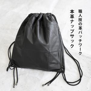 本革 ナップサック レザーバッグ 羊革 パッチワーク ブラック 黒 LB592