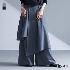 ワイドパンツ ロング レディース ボトムス レイヤード フレア タック アシンメトリー ウエストゴム ロングシーズン 返品交換不可 「メール便不可」「20」
