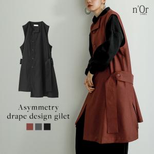 ドレス ノースリーブ レディース ワンピース ひざ丈 ジレ 羽織 アシンメトリー レイヤード ウエストベルト ヒップが隠れる 秋 冬「メール便不可」「30」
