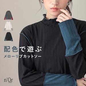 カットソー レディース トップス 長袖 インナー スタンドネック リブ 配色 切替 メロウ メロー レイヤード 重ね着 春 秋 冬「メール便可」「10」