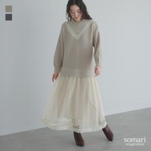 ワンピース レディース 長袖 ニット ニットワンピース ワンピ ドッキング チュール 返品交換不可 「メール便不可」「50」