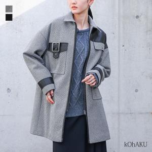 「送料無料」コート レディース アウター ミドルコート ステンカラーコート ジップアップ 異素材 合成皮革 バックル 裏地付き 秋 冬「メール便不可」「40」