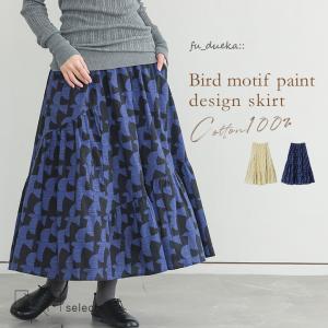 「送料無料」 スカート レディース ボトムス 春 夏 秋 冬 ティアードスカート バード柄 幾何学 幾何学模様 ウエストゴム「メール便不可」「20」
