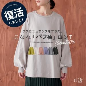 カットソー 長袖 レディース トップス ロンT ロールカラー バックボタン 袖口ゴム ぽわん袖 綿100% プルオーバー 50代 秋 冬 春「メール便不可」「20」