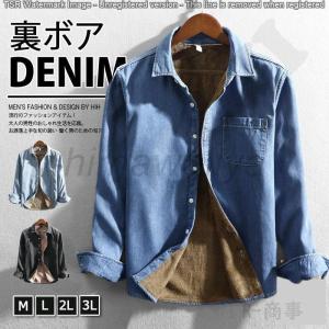 デニムシャツ メンズ 長袖 裏ボア カジュアルシャツ ワークシャツ 綿100% カジュアル ヴィンテージ ユーズド加工 色落ち お兄系