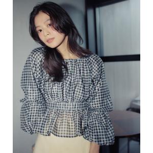 ブラウス シャツ シアーギャザーペプラムブラウス レディース